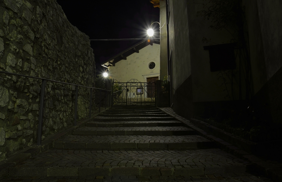 | La vedo pervasa da un verdino chiaro; un classico scorcio di molti vicoli e stradine dei nostri centri storici. |