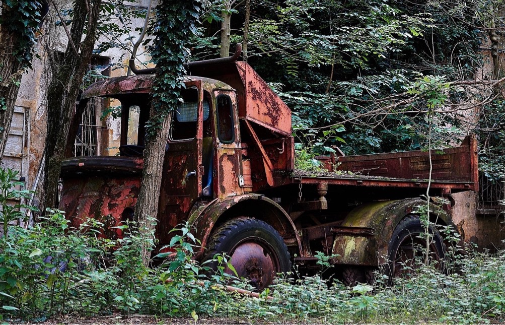 Concordo sul taglio; hai trovato un interessante soggetto in un'altrettanto curiosa location, qui potresti sbizzarrirti con tecniche HDR o similari per rivalutare colori e ruggine ...