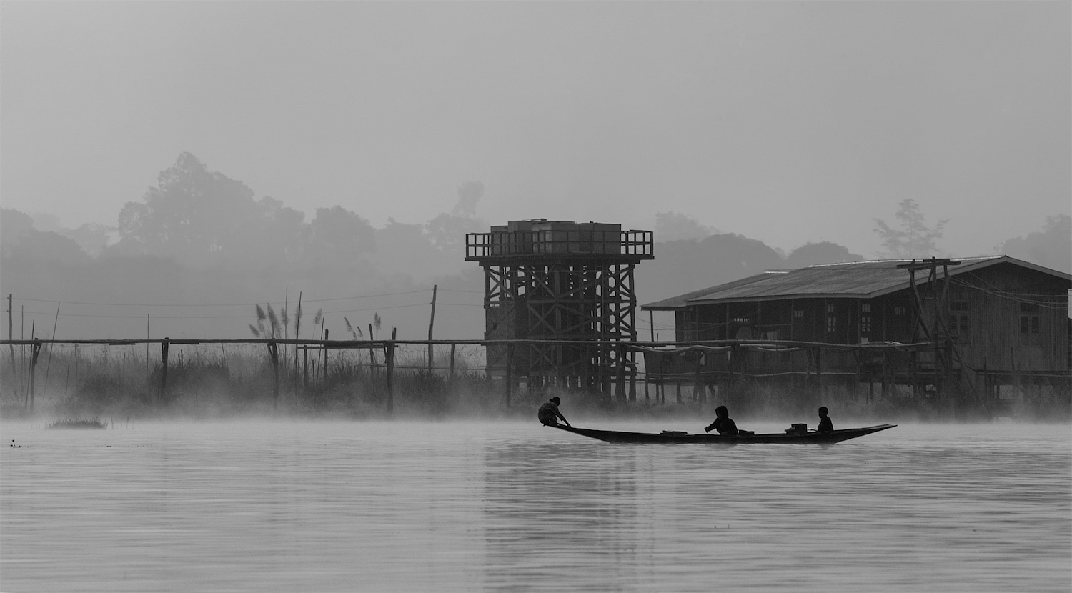La giudico veramente una bella immagine; intrigante la nebbiolina che si alza dall'acqua e una chicca la posa dell'estremo occupante della canoa.