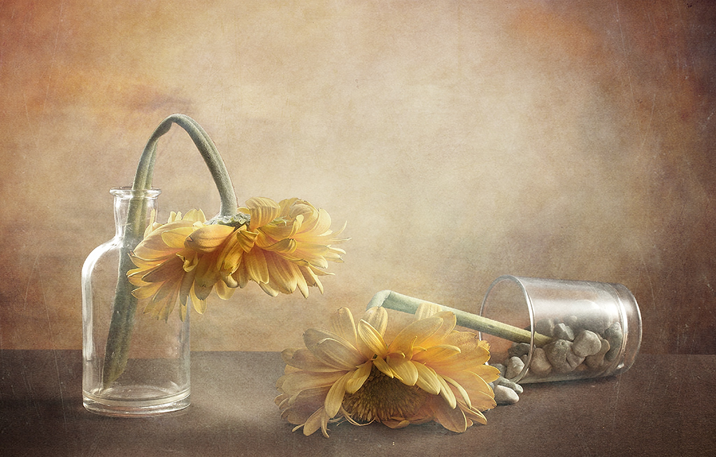 Un fiore compassionevolmente chino sulla irreparabile caduta dell'altro. Davvero umanizzato quasi teatralmente questo dramma emotivamente espresso in termini fotografici. Texture, sfumature chiaroscurali di luce, e resa dei soggetti, per me ne fanno la migliore della serie.
