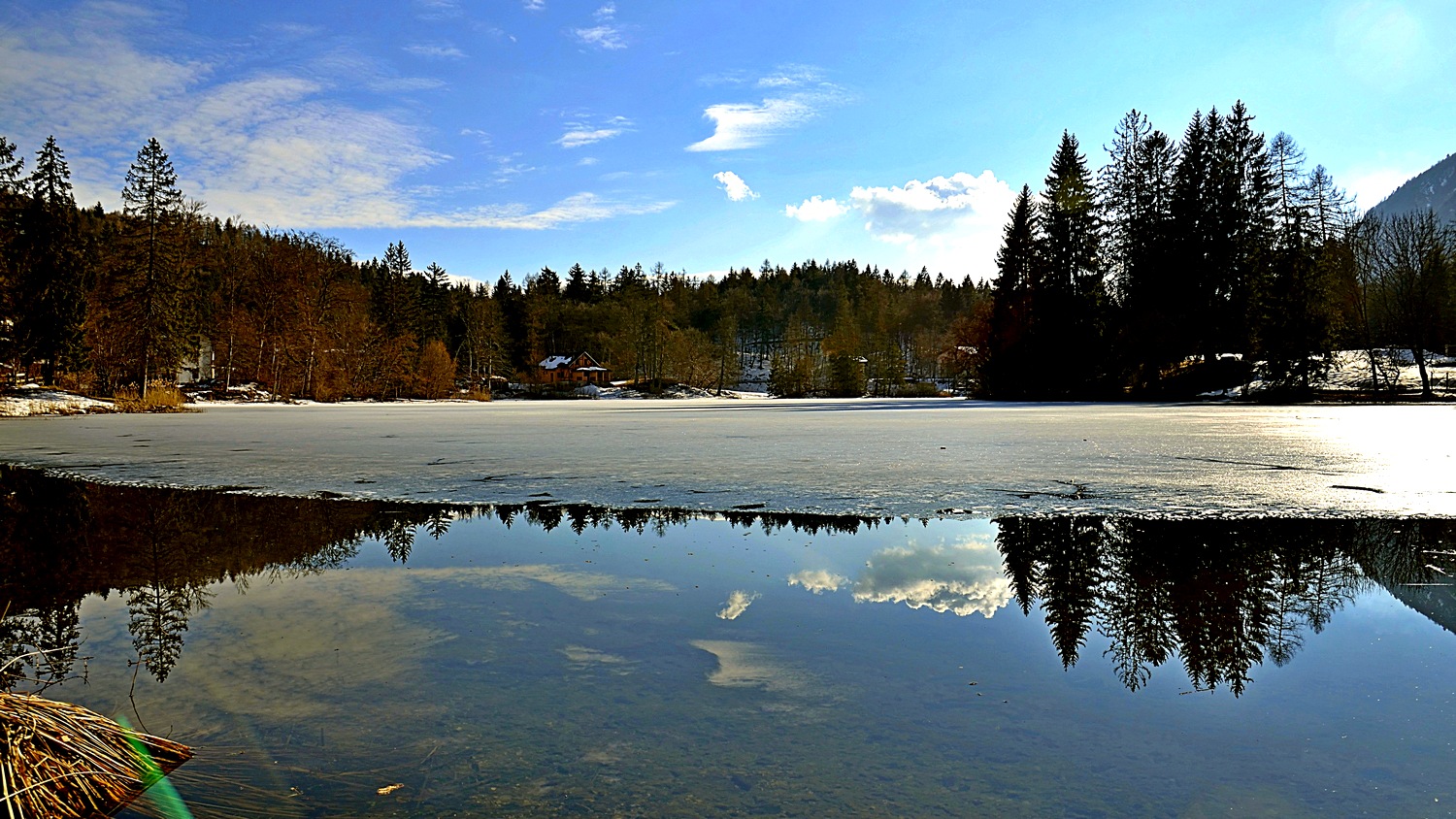 Grazie del commento. In merito ai colori e al contrasto sono parametri soggettivi. Per quanto riguarda la "cosa" verde sono delle foglie di una pianta acquatica che si protende nell'acqua.