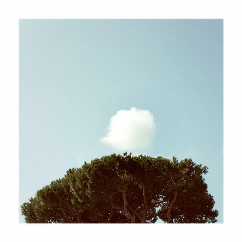 lo sbuffo di nuvola sembra quasi rimbalzare sulla cima accogliente dell'albero per poi scappare via....