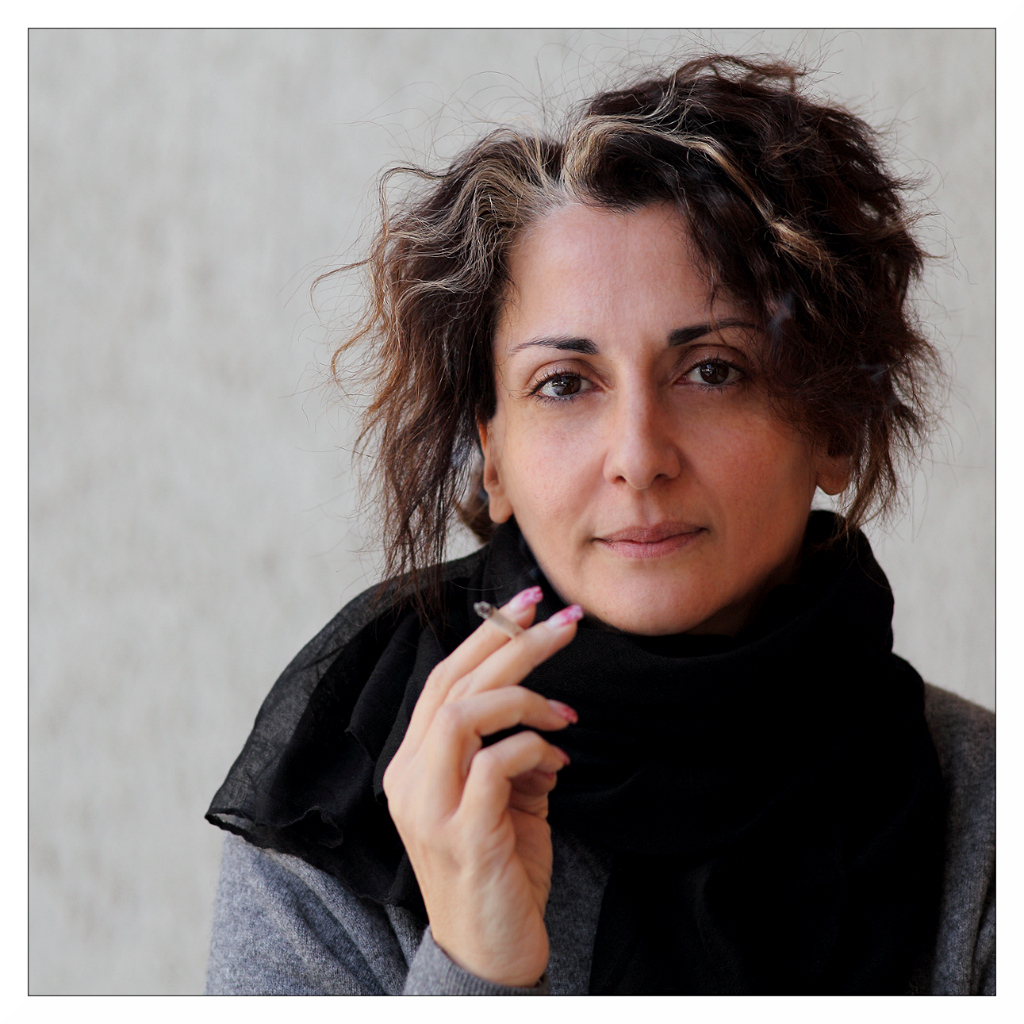 Capigliatura con quel tocco scapigliato che non guasta e il punto di pink alle unghie che addolcisce anche la presenza della sigaretta, sempre un pizzico, oggi più che mai, insolente.