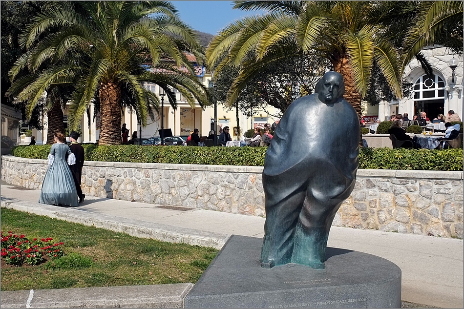 Grazie Buonaluce per l'attenzione.I due ragazzi in abiti ottocenteschi sono comparse che abitualmente passeggiano per i vialetti di Opatija per ricordarne la vocazione turistica che vedeva la località già frequentata dalla nobiltà austriaca fin dalla metà dell'ottocento.Ciao,Sergio.  |