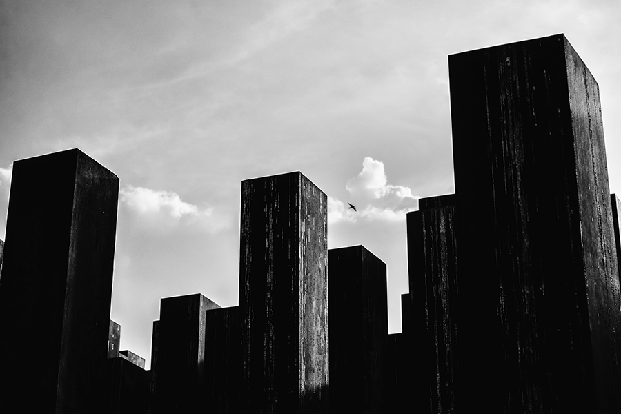 vado contro quello che dico di solito.. ovvero non dico nulla riguardo le linee cadenti ecc ecc.. perché qui vedo che il tutto diventa funzionale all'atmosfera complessiva dello scatto, a questo b/n così chiuso e cupo e minaccioso, che sembra quasi chiudere e catturare il volo di quel gabbiano chiudendolo tra questi elementi architettonici che vanno verso l'alto, ma che incurvandosi verso il centro sembrano soffocare il vero soggetto là in alto, in volo..