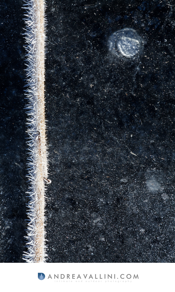 Ciao Andrea, bentrovato in questa sezione..., trovo piacevole la composizione, che non solo mostra il dettaglio del cristallo di ghiaccio, ma la composizione così studiata compone a sua volta un quadro astratto, o, come la vedo, uno sguardo al cielo, la luna sulla dx ed un palo dritto sulla sx..., bravo. _________________ StefanoIl mio sitowww.stefanopoccioni.com