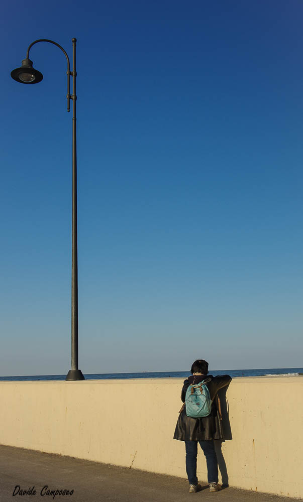 | Non male anzi piacevole. Personalmente mi sarei alzato sulle punte dei piedi per mettere un pochino di distanza in più tra l'orizzonte del mare e il muro inoltre avrei dato leggermente spazio in più a sinistra al lampione. La calda resa dei colori è sicuramente un punto a tuo favore. Ciao.