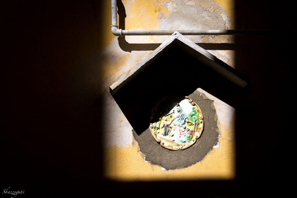 | Chissa' forse troppe ombre e lo sfondo bianco del quadretto forse bruciato; l'intenzione mi piace così come il muro rattoppato, il tubo con l'ombra sottostante però trovo che cìè qualcosa che non mi soddisfa pienamente. |