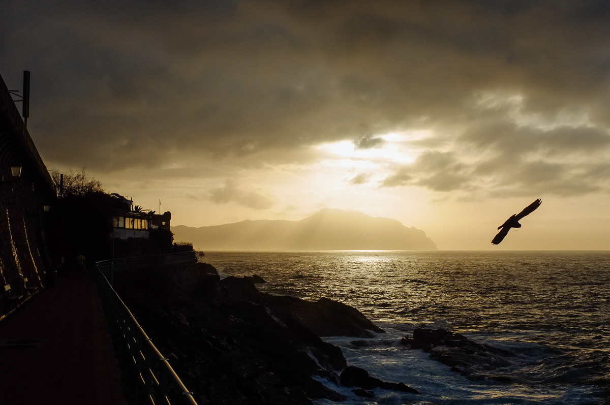 | Bello il momento colto e poi con questo controluce.......che dona una maggiore enfasi allo scatto; forse avrei tagliato un pezzo a sinistra a metà strada tra la curva della ringhiera e il muro così tanto buio non aggiunge molto |