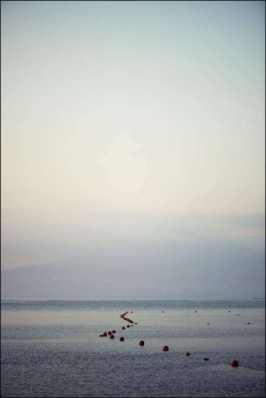 Molto molto carina, delicata ed originale. La sequenza delle boe rosse ci guida con brio alla vaga m imponente presenza del vulcano ( il Vesuvio vero? ) seminascosto dalla foschia.