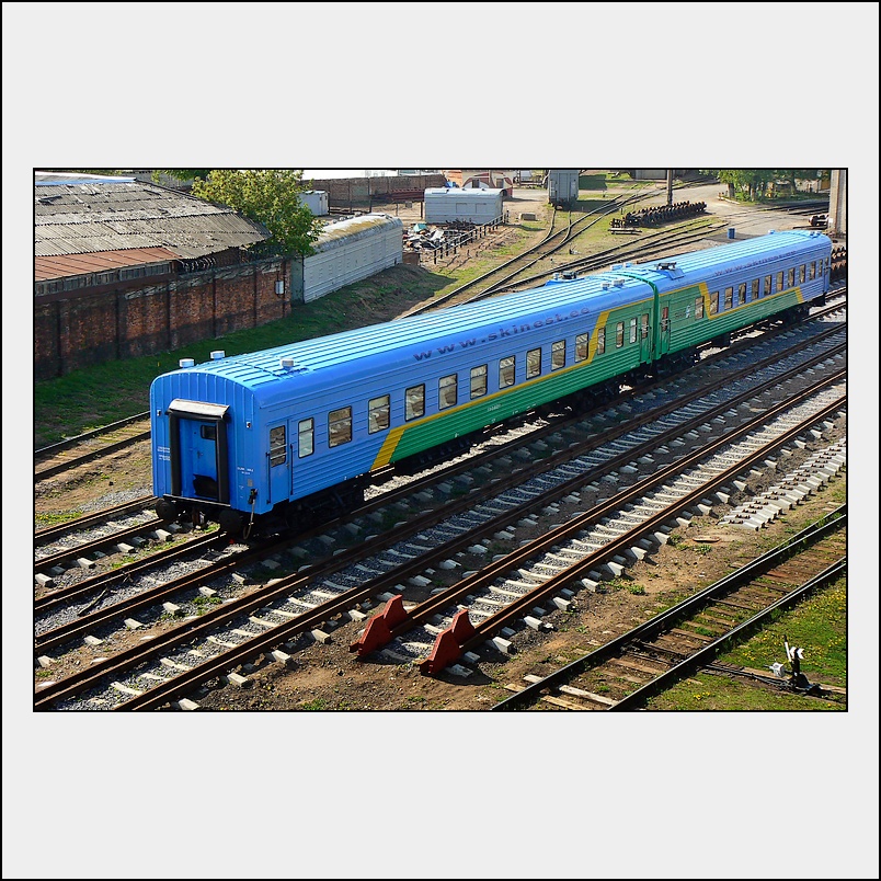 Qui una carrozza in area deposito, non credo sia bielorussa: la curiosità sta nei binari doppi, probabilmente da mettere in relazione con lo scartamento maggiore che in Europa che costringe i treni che attraversano il confine ad un cambio dei carrelli.