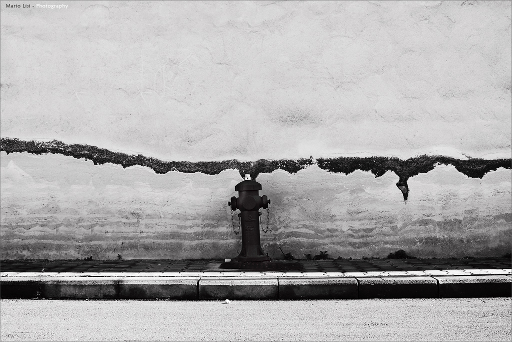 Soggetto scarno ma intenso, ed acutamente colto. Il segno sul muro come una ferita sanguinante, un flusso che dall'idrante sembra scaturire...