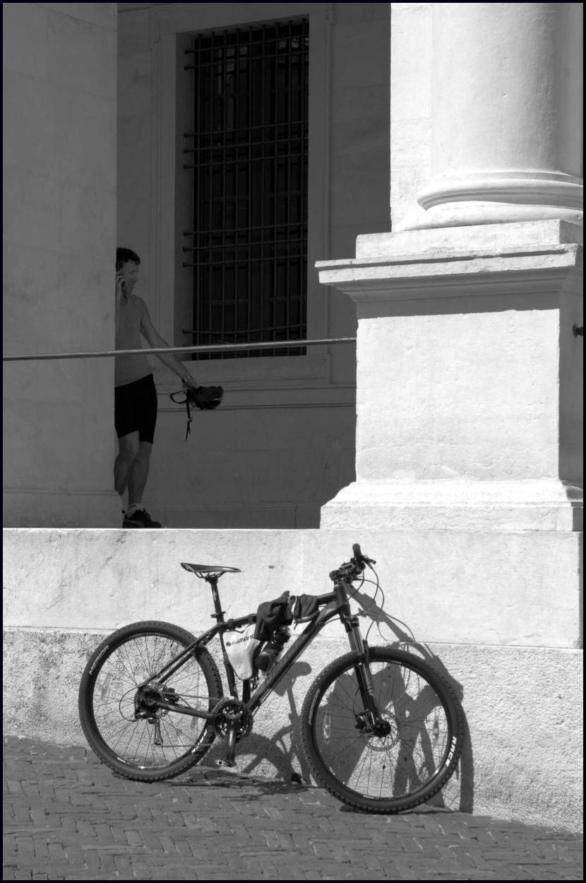 Bello questo momento di relax con la bici in attesa della ripresa della pedalata.Buona anche la compensazione luce-ombra.Ottimo colpo d'occhio. Ok!