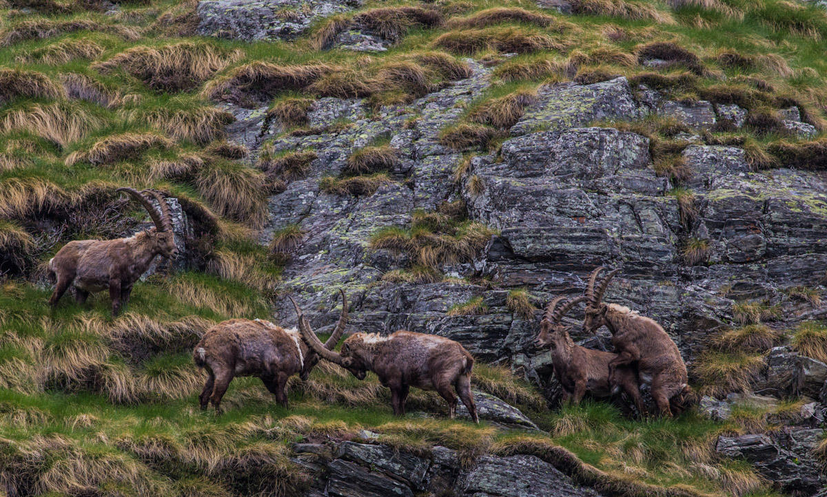 La scena è molto bella ma data la luce che cera e la poca differenza di tonalità tra gli stambecchi e lo sfondo non è che si possa fare miracoli per esaltare i soggetti. Comunque Ok!