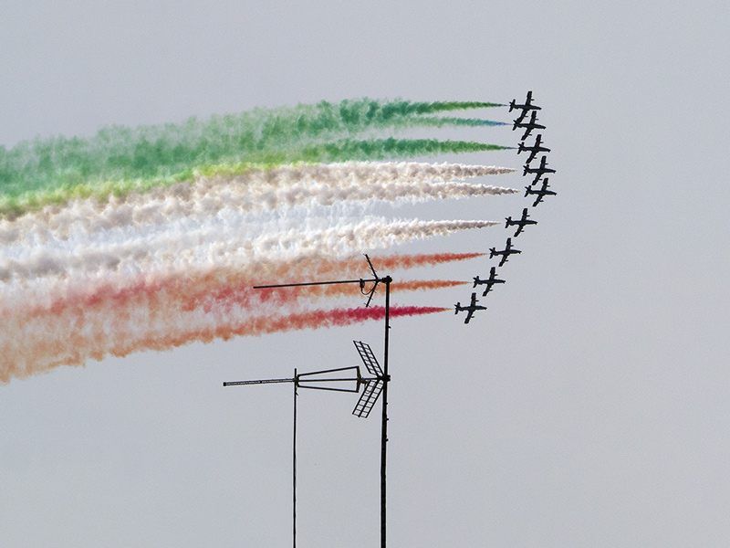 | ci sarà sicuramente un motivo per cui non hai evitato, anzi evidenziato, le antenne. senza di esse saremo di fronte alla solita e pallosa foto delle frecce tricolore. sarebbe una foto vista, rivista e fatta in padella in tutte le salse, nevvero, Marisa ? |