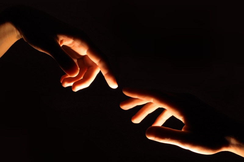 si fa con mani di due persone diverse, proprio per simboleggire la comunicazione tra 2 individui (persone) diversi...