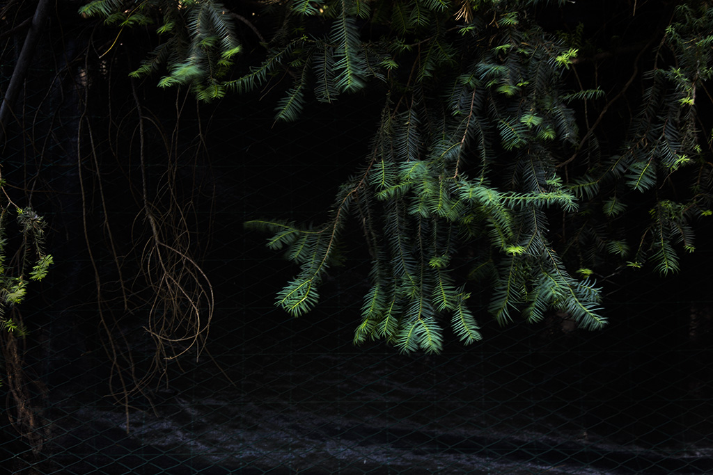 mi piace come il verde dei rami emerge in cascata dai toni scuri...