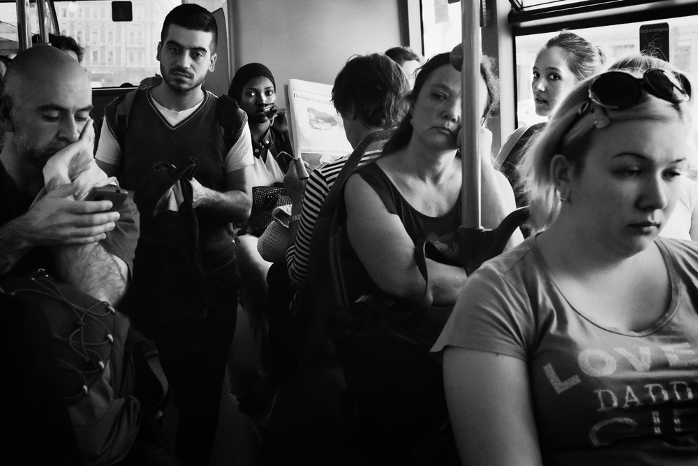 Nella composizione ho cercato di utilizzare i passeggeri come guida verso il soggetto che volevo riprendere in questa banale quotidianità