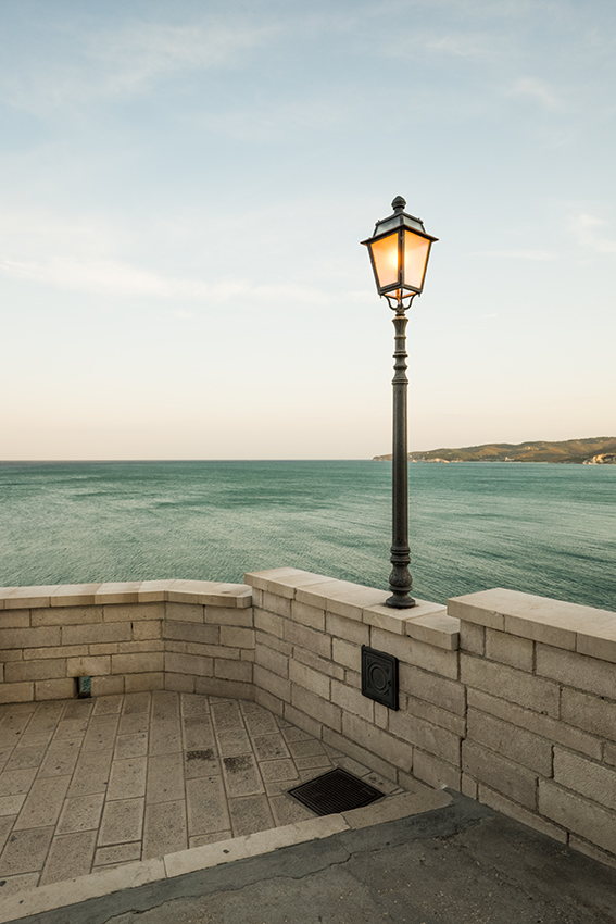 Mi piace moltissimo. Apparente semplicità, ma resa invece attenta sia della componente paesaggistica che delle note architettoniche che entrano in gioco. Elegante e particolare, per la presenza ben visibile in dettaglio del ricco incresparsi dell'acqua, come percorsa velocemente da un vento invisibile che porta al largo. Unico minimo dettaglio, il bel lampione dalla ampolla già caldamente accesa , che però interseca per un soffio l'angolo acuto del promontorio lontano. Un leggero spostamento in ripresa e sarebbe stats ancor più armonica.