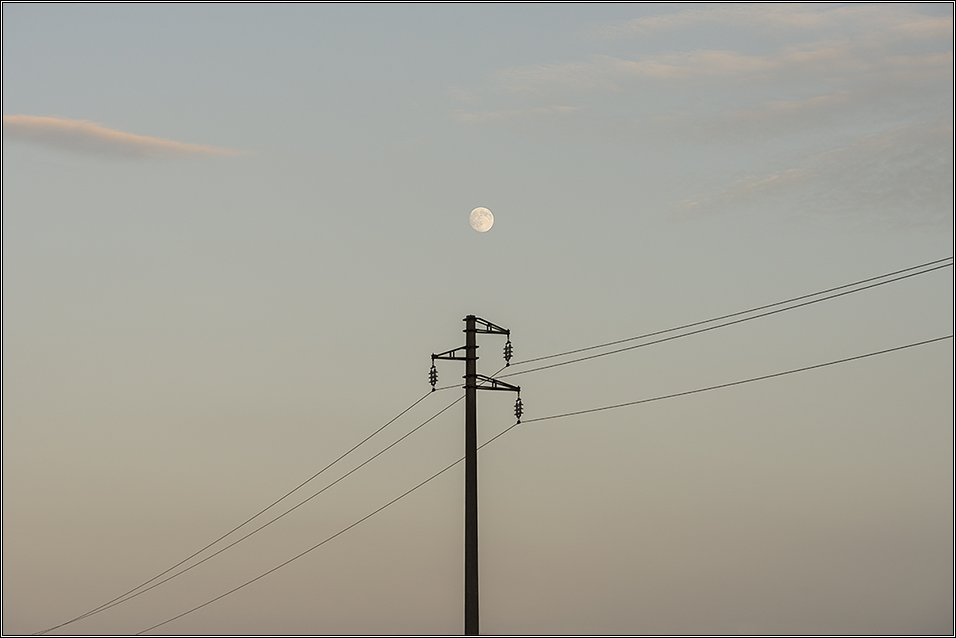 Esecuzione elegante e pulita. Un classico delle riprese minimali che strizzano l'occhio al fascino sempre speciale della luna nelle ore canoniche , più fotograficamente felici.Il bordino bianco è sottilissimo, però per questioni estetiche lo eliminerei totalmente.