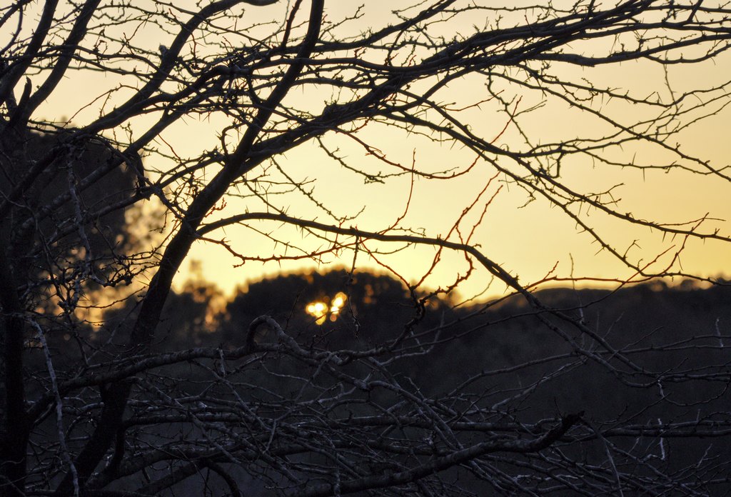 Il groviglio di rami dà profondità alla foto, e indirizza verso la farfalla di luce.