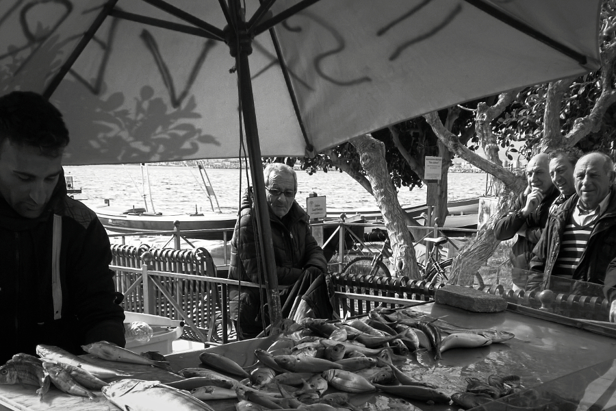 ho cercato di scattarla senza farmi vedere.. non tanto per il pescivendolo, loro sono abituati ma per gli spettatori, ne conosco qualcuno che è un bel tipetto Rolling Eyes