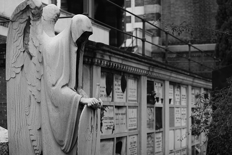 Io la chiamerei "angelo sterminatore" visto il volto in ombra e la spada...