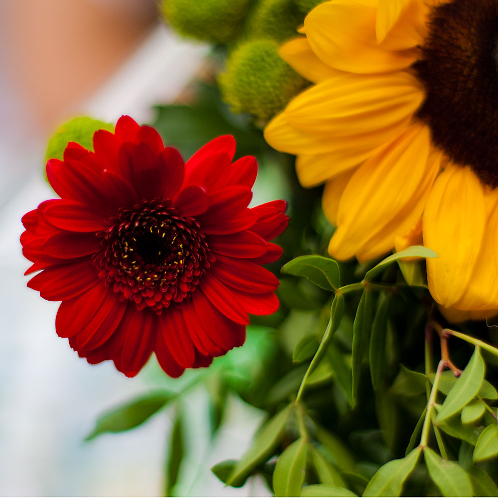Dettaglio abbastanza morbido, però la focheggiatura sul fiore rosso a me pare corretta e la compo che hai scelto concentra bene il nostro guardo, con armonia, sul raffronto cromatico rosso giallo che hai scelto di privilegiare.