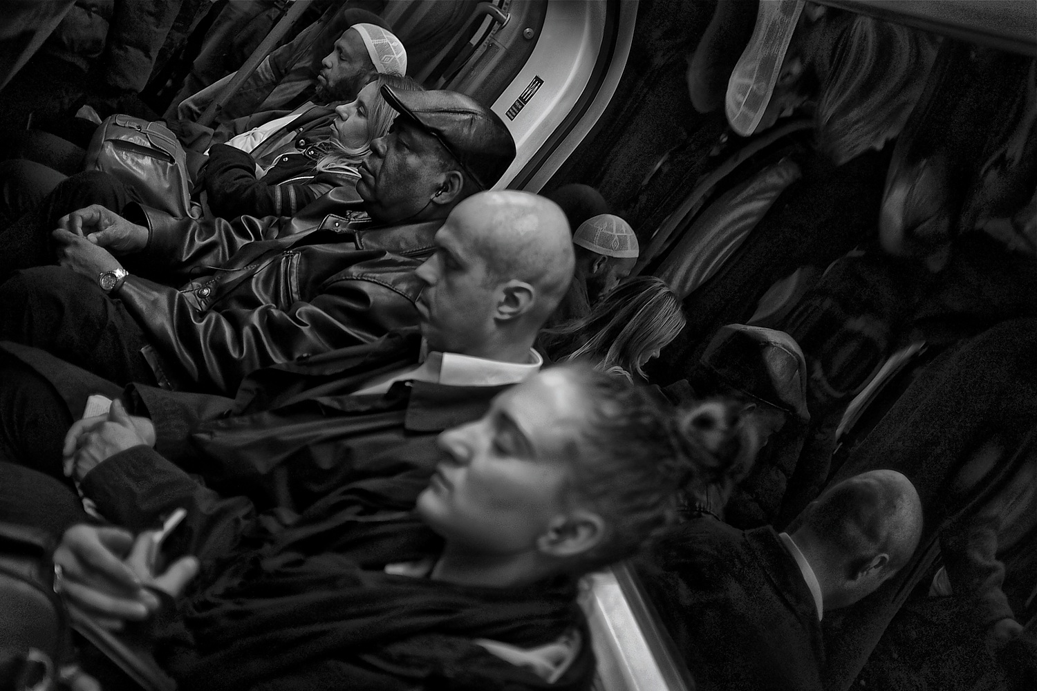 Foto simile come obbiettivo ad un'altra street che ho postato qui tempo fa. questa volta ero in piedi ed ho scelto la più stramba delle prospettive che mi poteva venire in mente, ignorando tutte le regole ho privilegiato l'informazione (i riflessi), cercando di prenderli tutti senza mortificare troppo la base formata dai passeggeri (alla fine la rotazione dalla base non è così forte).