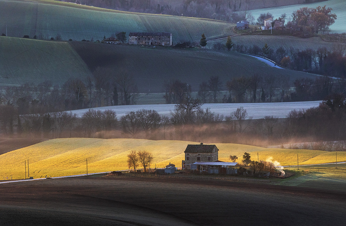 composizione curata ed ottimo il pdr, molto efficace a mio avviso anche un taglio panoramico che vada ad escludere la parte alta tagliando appena sotto al casolare centrale.