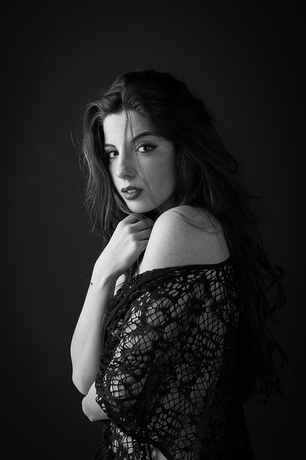 ciao Marco, una splendida foto, data la posa della modella, mi pare evochi malinconia e preoccupazione, vista la posizione delle braccia, ottima la luce e il b/n, bravo.