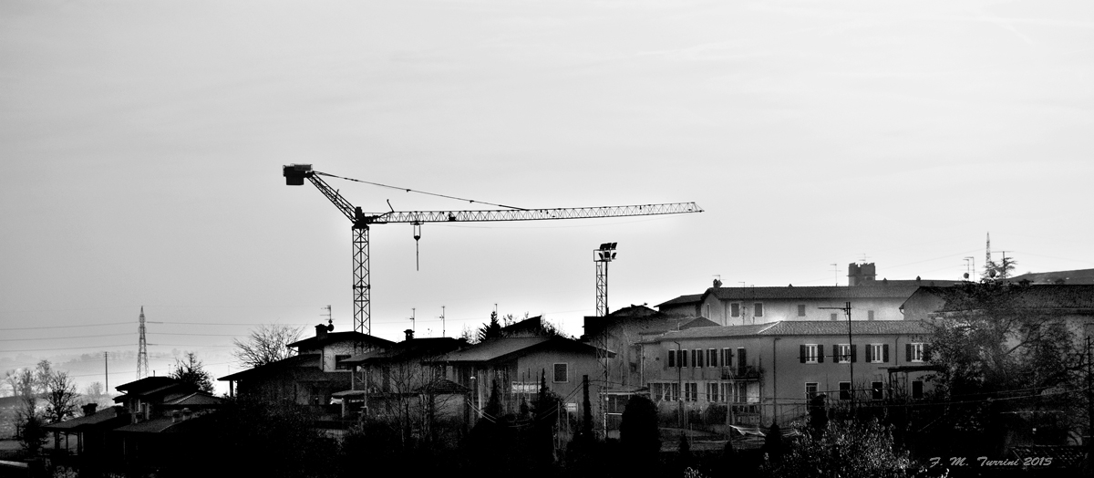 Il formato wide puo' aiutare nella lettura di questo paesaggio, tanto piu' che la gru, soggetto della foto, sembra quasi "cercare" questo fermato, data la sua lunghezza orizzontale.