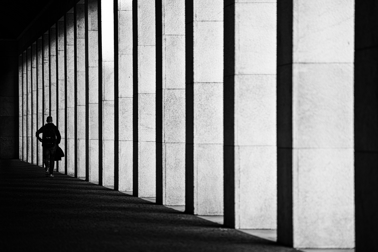 Secondo me, se l'omino si trovava nel terzo a destra, con maggior spazio davanti a se, risultava più equilibrata..vista cosi da l'idea di scatto all'ultimo istante (nel senso buono del termine), anche se può essere una tua scelta compositiva, ma è più difficile trarne una lettura perlomeno in senso positivo..sembra il finale di un film, mi trasmette un senso di chiuso, di incompleto.