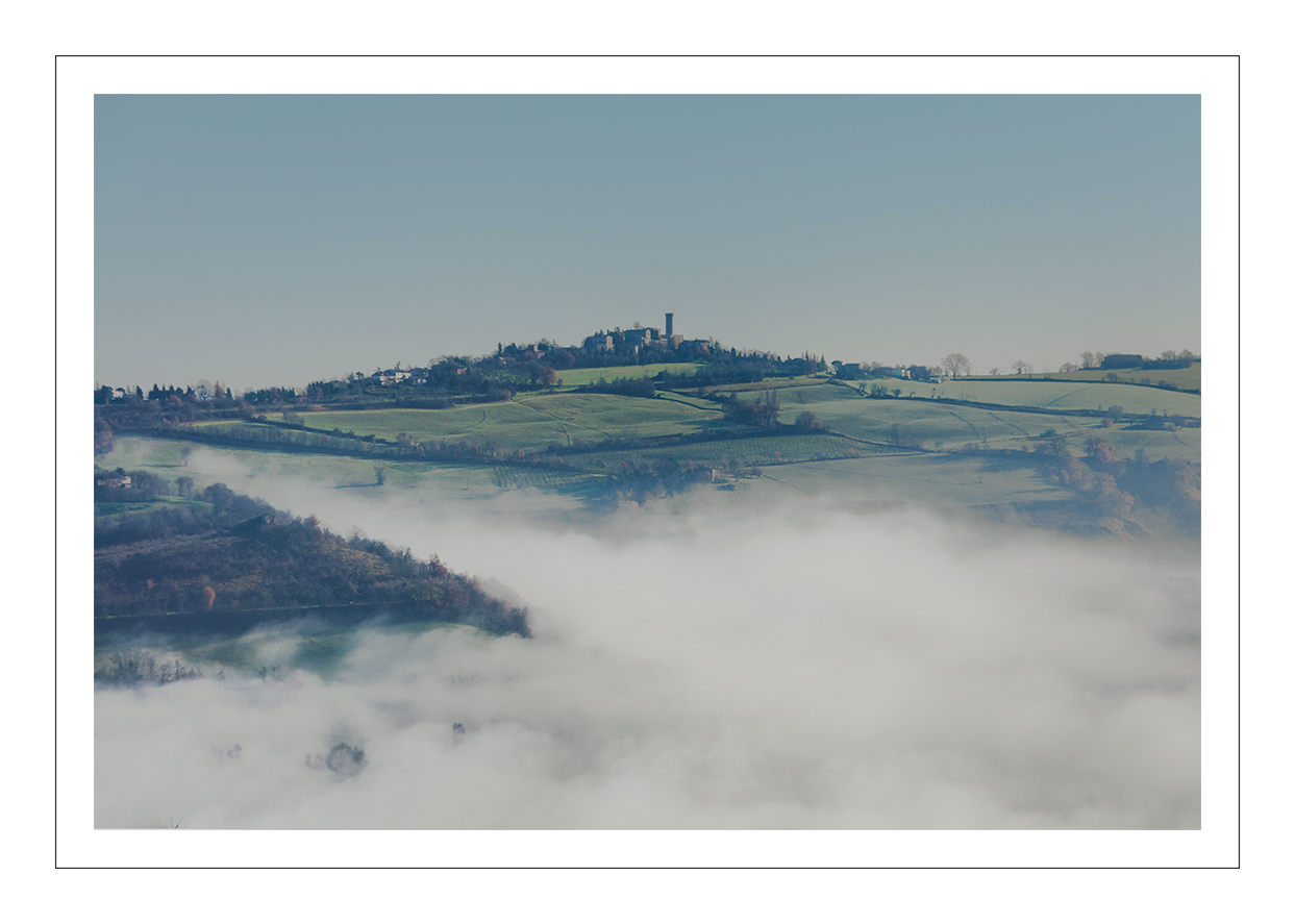 Per me Emanuela hai composto e presentato , davvero elegantemente queta visione paesaggistica. Ma, ben osservando,quello che non mi convince sono colori e luce. Per me è sottoesposta almeno di mezzo stop, dato che oltre la bella distesa centrale di nebbiolina, la luce, dato anche l'ora di scatto, doveva essere lattea ma più intensa. Il cielo forse era omogeneamente più chiaro e hai pensato di intervenire in post per dagli un po' più di tonalità azzurrina. Spesso è una opzione di leggero rinfozo più che buona, però qui per me va contro il realismo della scena. Anche in basso poi le nuvolosità-foschia non è più un chiarore luminoso, ma una azzurrità strana. Aspettiamo anche altri commenti, ma la mia diagnosi qui è che la miglior terapia del caso in oggetto era evitare interventi non efficaci, evitare la sovramedicazione.. diciamo così per restare in tema, sanitario. sei sempre in crescita, devi solo imparare a far tesoro degli strumenti che stai giustamente sperimentando.