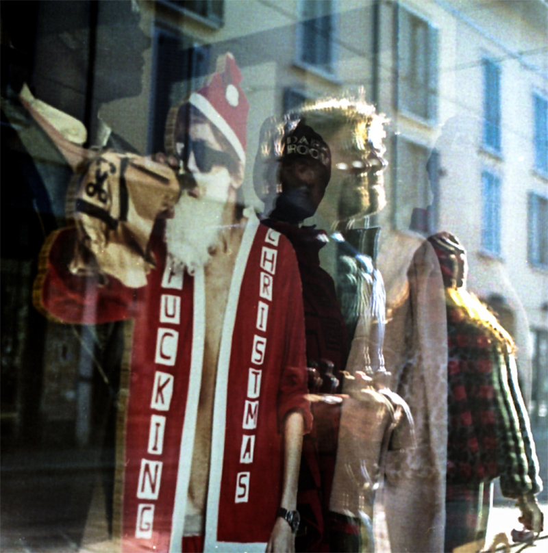 Un mix di riflessi in questa vetrina natalizia, sovrapposizione di stili e di pensieri.