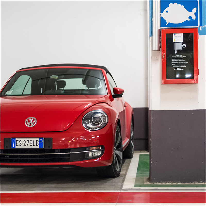 Interessante il gioco di colori e forme all'interno di questa foto. A dire il vero proprio il pesce rosso non rosso ma bianco/blu sembra essere di troppo ma poi trova un corrispettivo nella targa (forse da oscurare per la privacy).