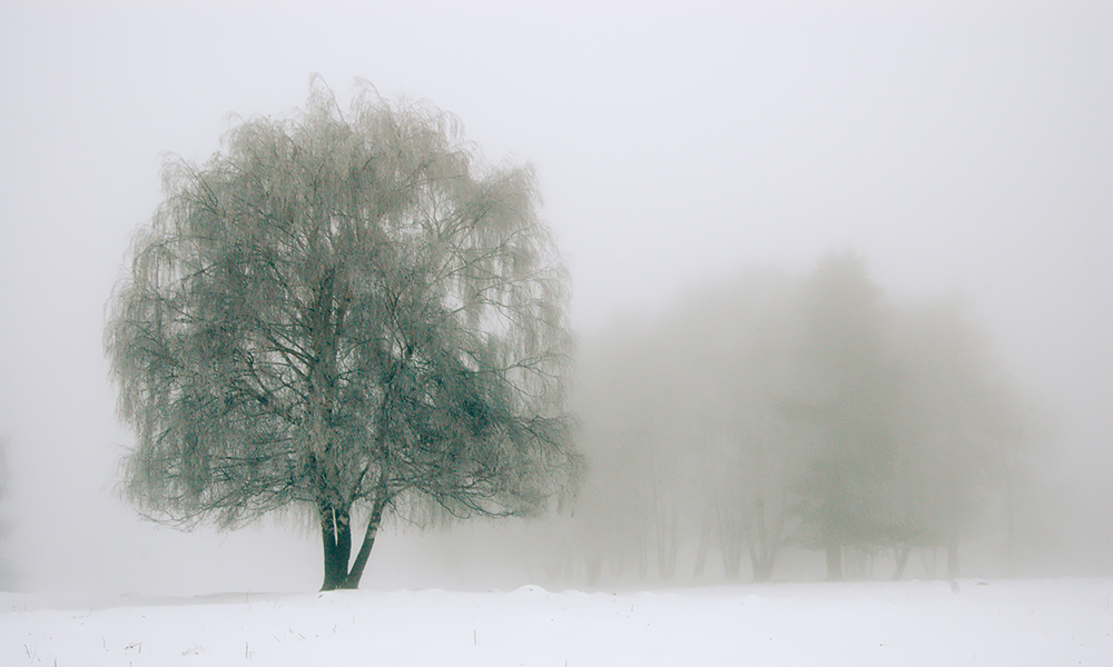 Gli alberi solitari nella nebbia sono tra i miei soggetti fotografici preferiti. Qui, in più, si intravede una lieve sagoma di boschetto sullo sfondo che impreziosisce la composizione e contestualizza meglio la foto.