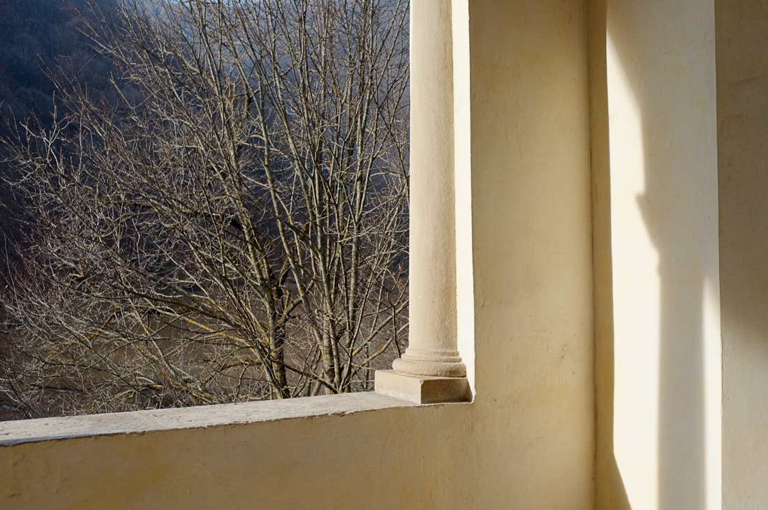 L'altro è relativo ai ruoli tonali: il "fuori" (non essendo poi particolarmente accattivante) dovrebbe essere al servizio del gioco di luci ed ombre sulle porzioni di architettura. Invece così com'è - alla pari, cioè, come "peso" in termini di luminosità - entra in competizione con la parte migliore dello scatto, impoverendola.