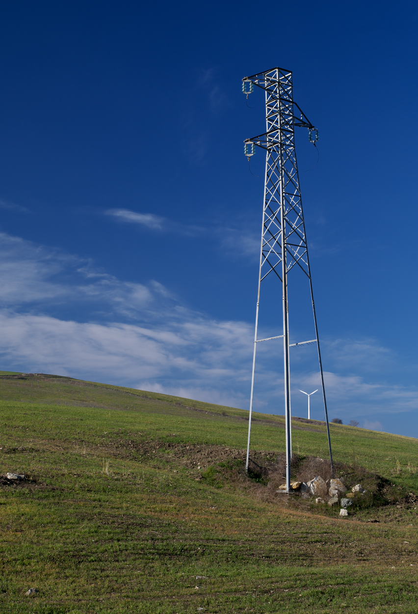 Mi piace la pala eolica (almeno credo sia quella) incastrata dentro il traliccio, quasi un messaggio "alternativo". Wink