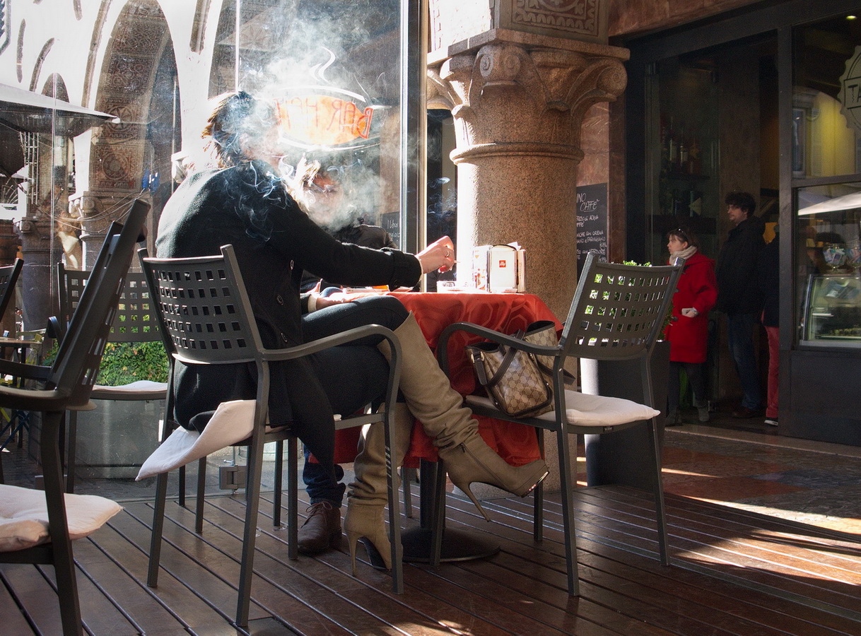 Bella e originale l'idea del fumo che nasconde il volto, ci sarebbero da fare una marea di considerazioni psicologiche ed esistenziali. Tutto questo inserito in una buona composizione. Wink