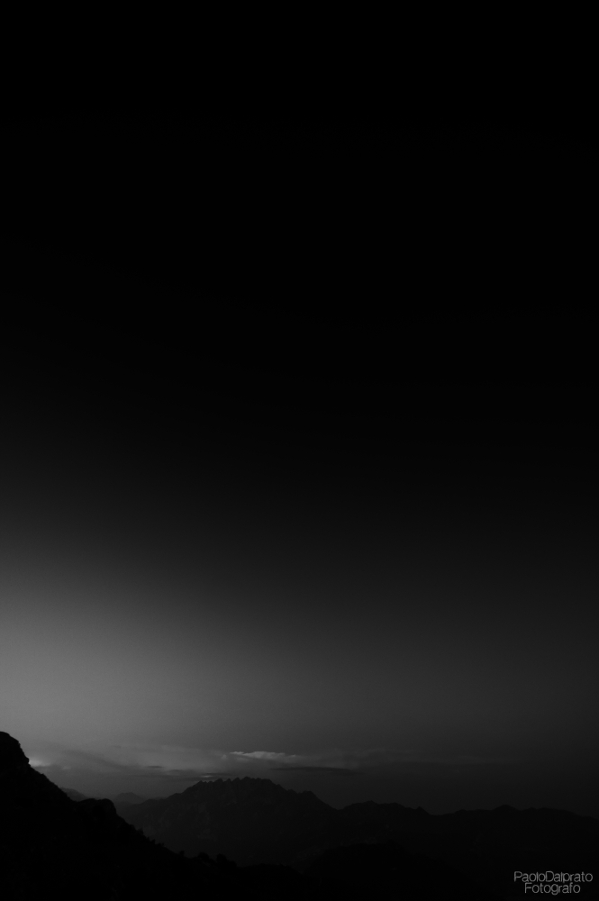 In questo specifico caso io lascerei compositivamente le cose come stanno. La oscurità è densa pregnante ed altissima nel cielo e in ragione di ciò si fa più potente la lama di luce che squarcia il nero in basso, come una speranza o una rivelazione che si fa strada all'improvviso.