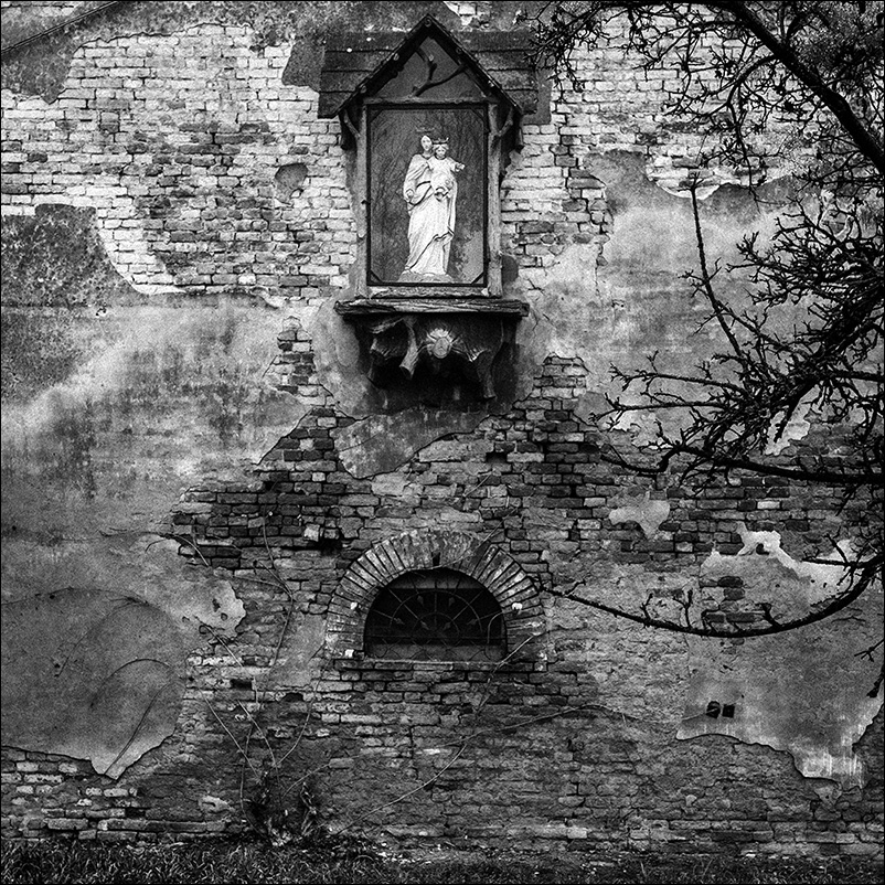 Sempre emozionanti queste piccole edicole che spesso ritroviamo nei posti più impensati ed a volte abbandonati,ma quasi sempre con qualche segno,anche rinsecchito,di devozione.Ottima questa prova per BN,composizione e taglio.Complimenti!  _________________ Sergio Demitri https://www.flickr.com/photos/124946035@N02/ |