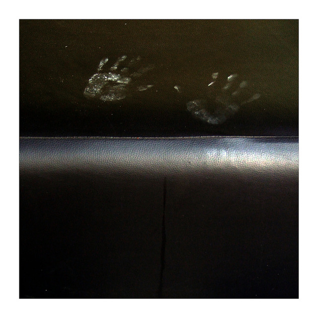 Il dato di partenza dell'immagine è stato la presenza di queste manine impertinenti, testimonianza del loro passaggio su un divanetto pubblico prima del mio arrivo.