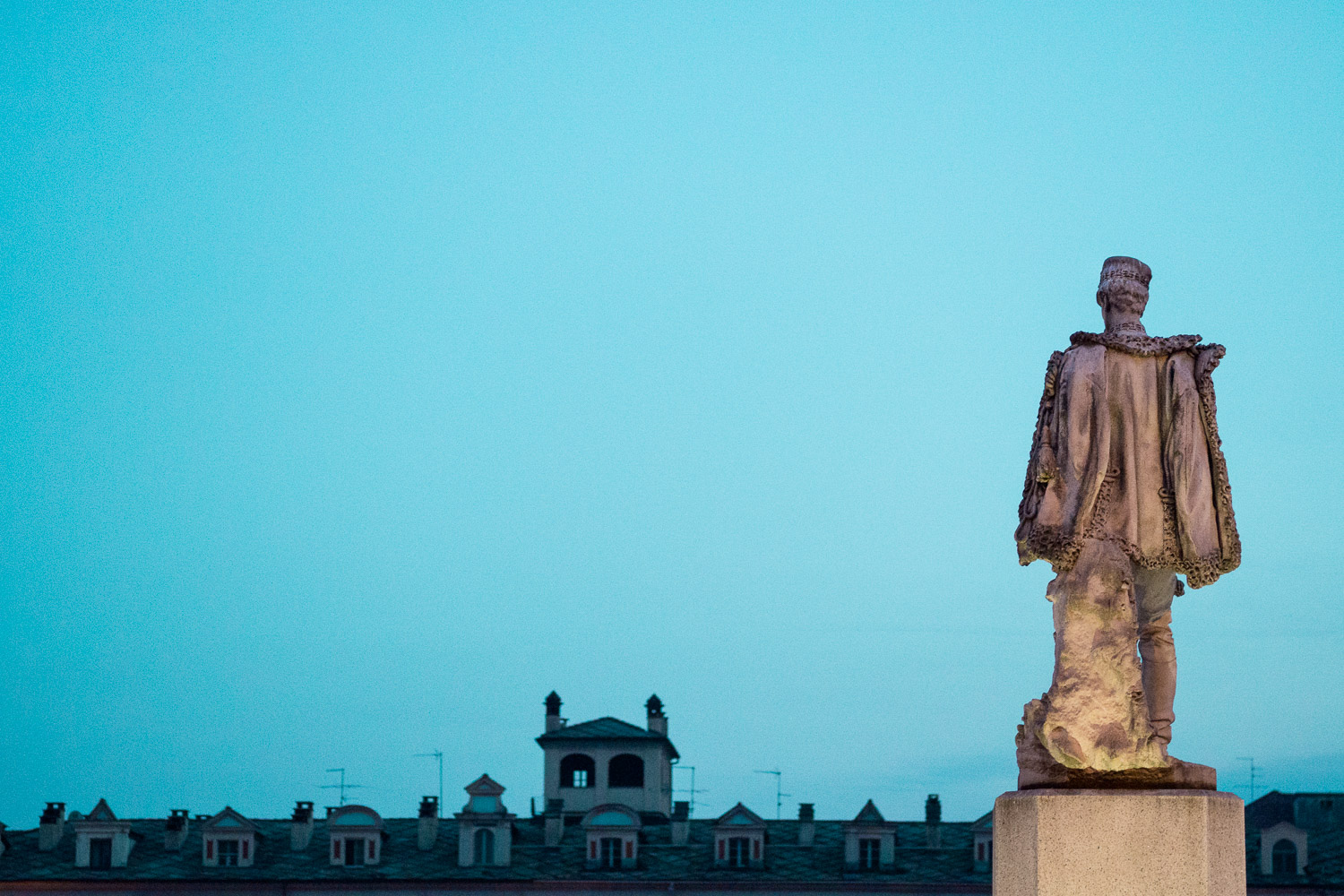 Forse andava ripreso a 3/4 facendo vedere il volto del generale, troppo granuloso il cielo, dominante azzurra ance sulla struttura in fondo..