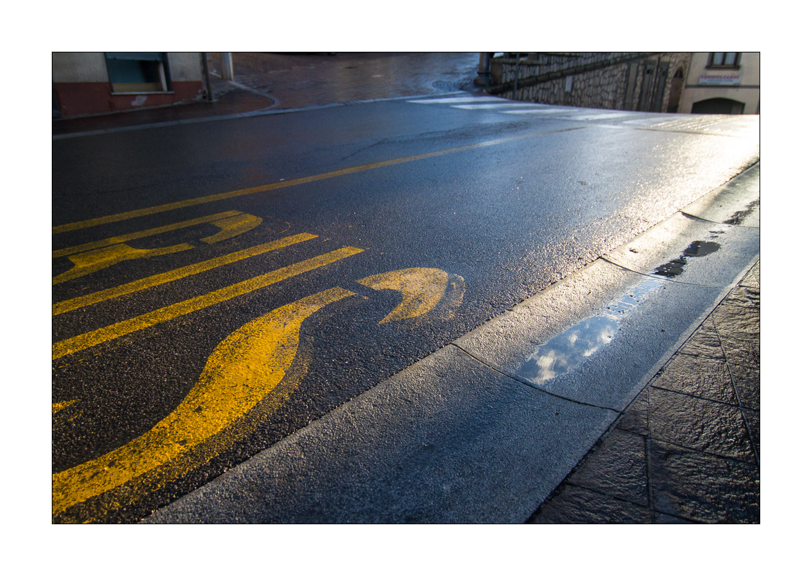 Bella luce, bei colori e il riflesso delle nubi nella pozzanghera.