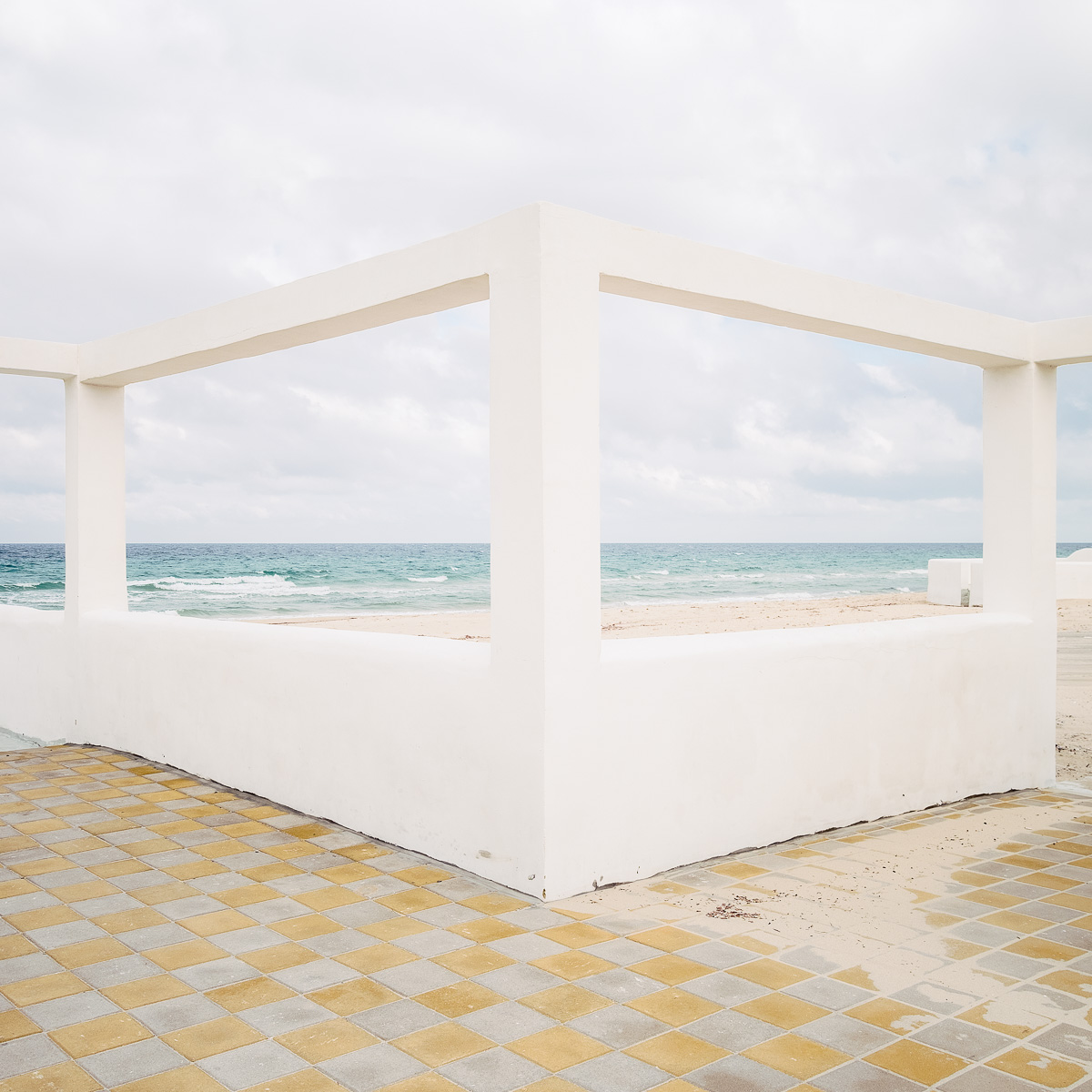 In questo senso trovo che la resa della pavimentazione coi suoi riquadri gialli, che si mantiene come "sostanza" pari a quella del mare, non sia stonata rispetto all'insieme, né pesi troppo nell'equilibrio generale, anzi costituisca un importante ancoraggio a terra.
