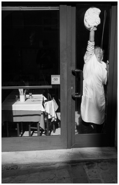 Sono stato molto indeciso se inserire o no la cornicett bianca, l'ho inserita perchè mi piaceva l'idea che l'occhio segue il braccio della donna, lo straccio e poi cornicetta bianca.  |