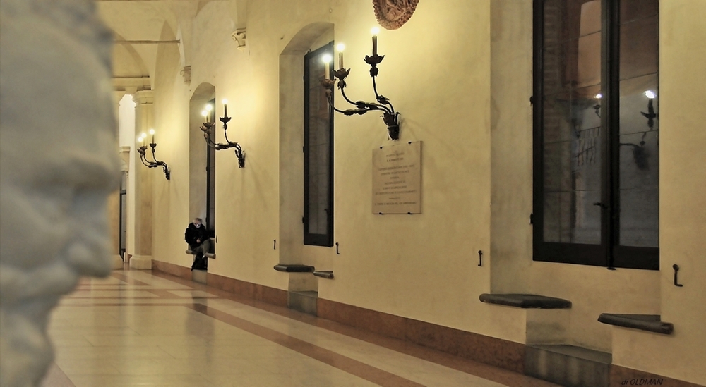 Un perfetto sconosciuto il viso di una statua un lungo corridoio.