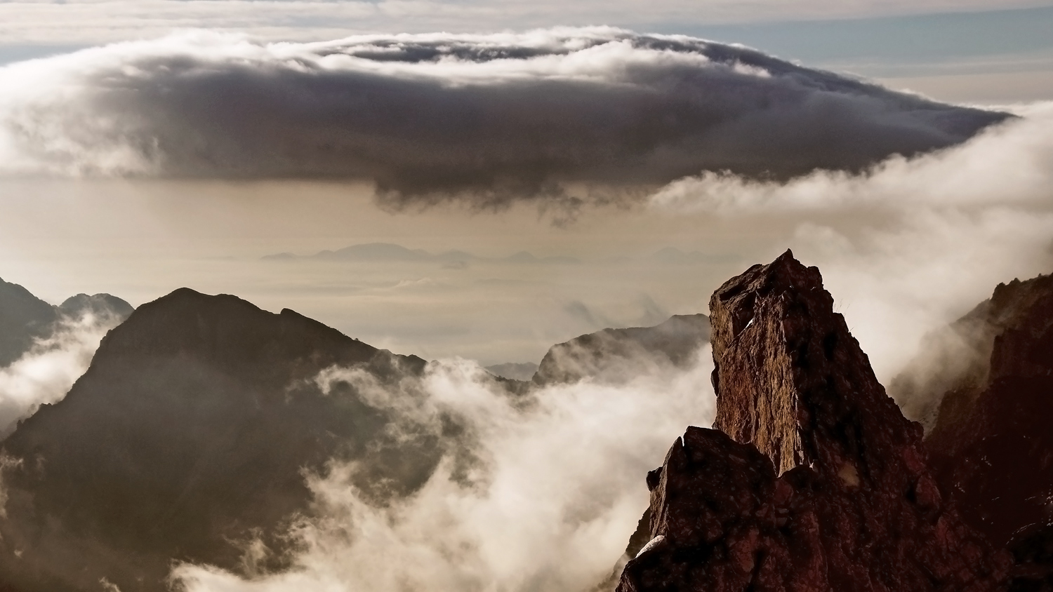 In questa foto si percepisce il ribollire delle nuvole attorno e tra le montagne. Una composizione azzeccata che fa stare dentro al paesaggio. _________________ Fiorenzo Carozzi