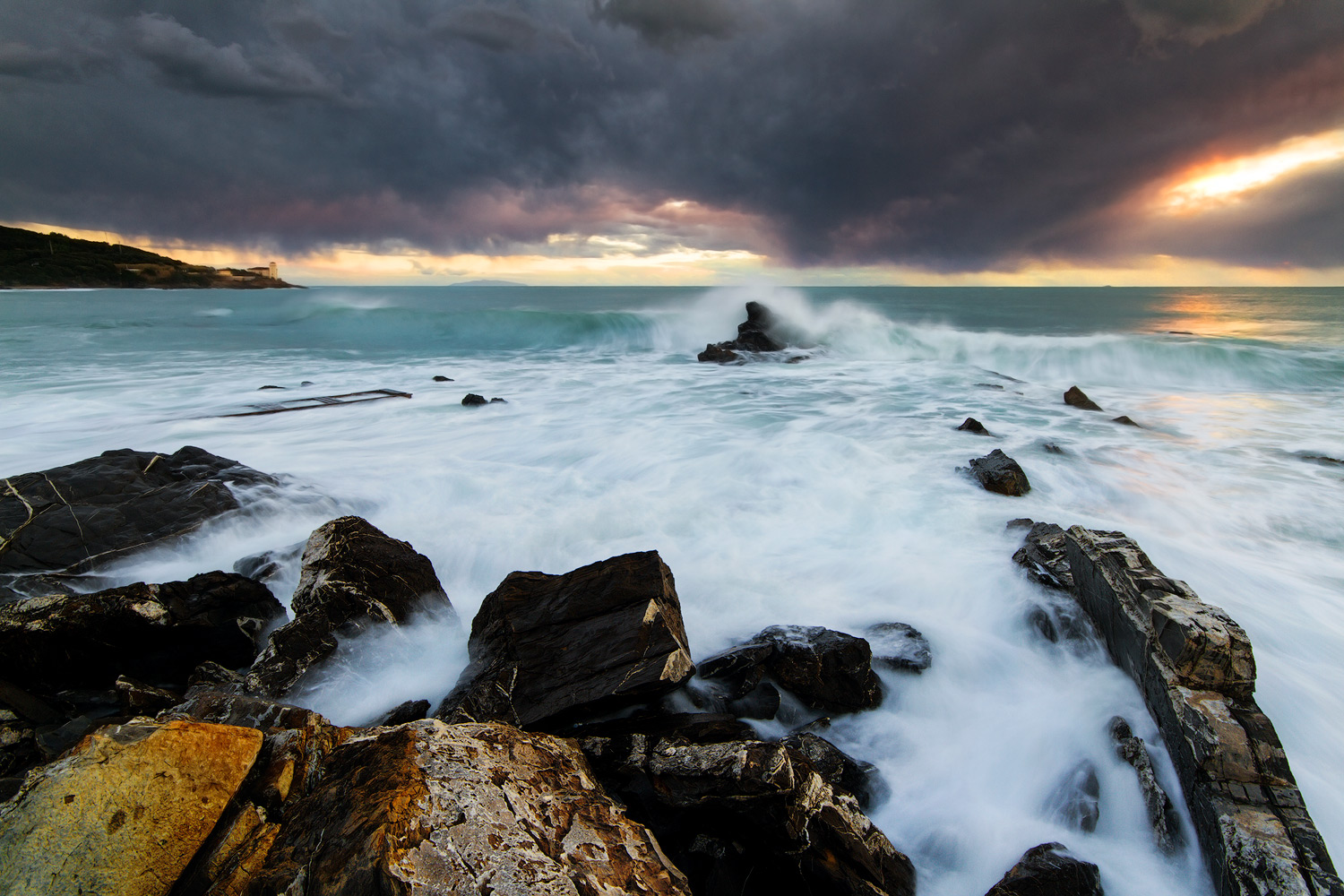 Bella ripresa della drammaticità del mare sovrastato dalle nuvole temporalesche che cedono alla luce solo lontano sull'orizzonte. La situazione metereologica è di per se sufficiente a dare forza all'immagine quindi addolcirei un po' i toni che trovo eccessivamente contrastati. _________________ Fiorenzo Carozzi